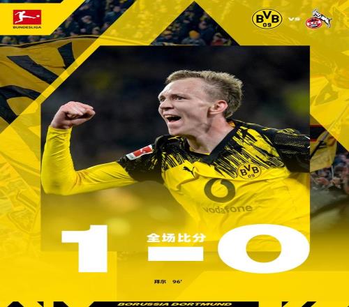 第68分鐘,多特蒙德進行換人調整,薩比策和拜爾替補上場,格羅斯和丘庫埃梅卡被換下。第90分鐘,布蘭特外圍遠射,門將飛身把球撲出。補時階段,拜爾在禁區左側抽射破門,完成絕殺!主場球迷瘋狂慶祝!最終,多特蒙德1-0擊敗科隆。多特蒙德總積分達到17分,升到第3,落后拜仁7分。