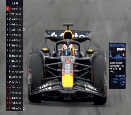 兩臺紅牛先后沖線,角田排在第19,維斯塔潘只能排在第16,紅牛雙車Q1出局!!!