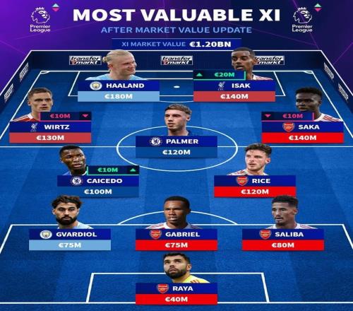 德轉列英超最貴11人陣容:哈蘭德領銜,7人身價過億,總價12億